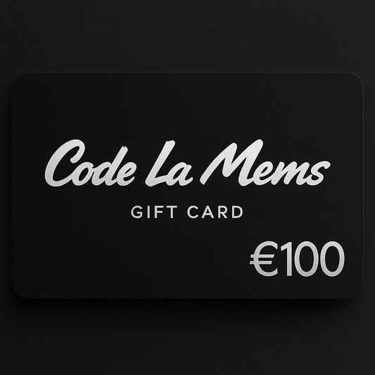 Met een gift card van Code La Mems geef je een wereld vol unieke kleding en creativiteit. Perfect voor elke gelegenheid!